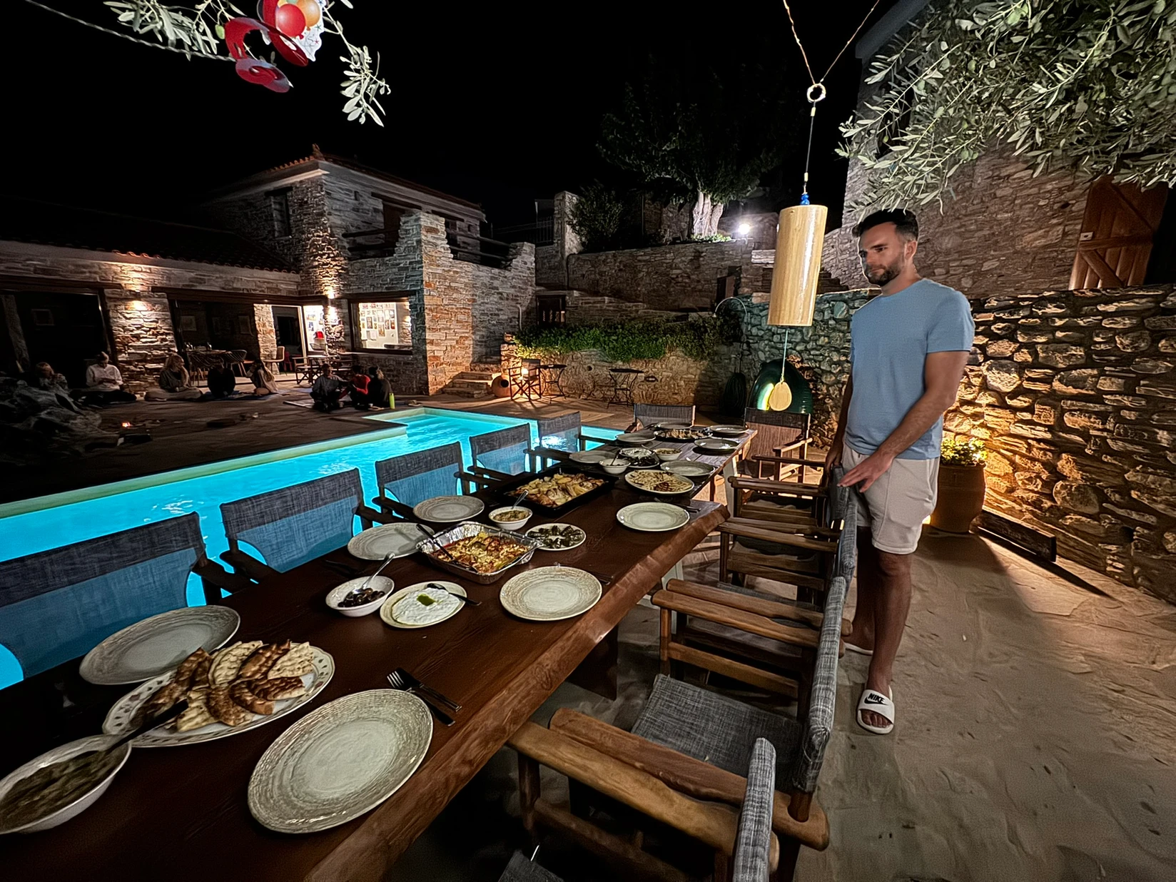 Staying in a beautiful Traditional Grecian Mansion complete with Private Pools, Jacuzzi and views of the stunning hills.